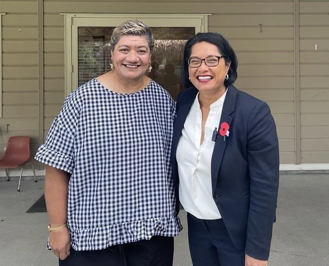 Piri'anga Alofa Pacific and Community Services Senior Lead Caroline Mareko spoke to media late April 2025, alongside Labour's finance spokeswoman Barbara Edmonds at a press conference held at Nuanua Kindergarten in Porirua.